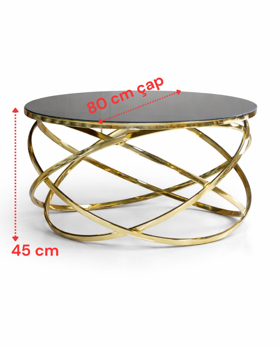 Gold metal ayak yapısı ve siyah cam üst tablası ile üretilen bu model, yerli üretim kalitesi ve özenli işçiliğiyle hazırlanmıştır. Sağlam malzeme yapısı sayesinde uzun ömürlü kullanım hedeflenirken, estetik görünüm ve dayanıklılık bir arada sunulmuştur.