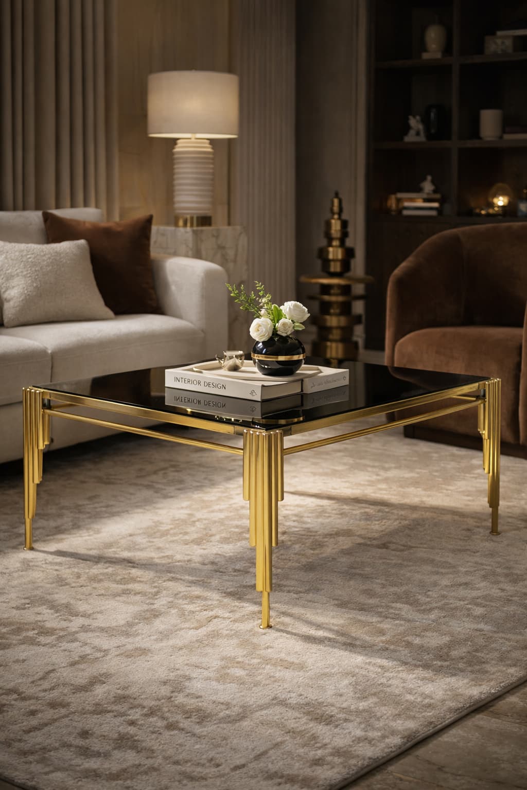 Kare Sütun orta sehpaKare Sütun orta sehpa, modern salon dekorasyonunda güçlü bir tasarım dili arayanlar için tasarlanmış metal ayaklı cam orta sehpa modelidir. Orta sehpa, oturma alanının merkezinde yer aldığı için hem estetik hem de günlük kullanımda işlevsellik sunmalıdır. Kare Sütun; gold ton metal ayaklarının “sütun” etkisi veren katmanlı formu ve siyah cam görünümlü üst tablasıyla mekâna premium bir görünüm kazandırır. Dikdörtgen formu sayesinde özellikle L koltuk, geniş oturma grupları ve modern salon planlarında dengeli bir yerleşim sağlar.